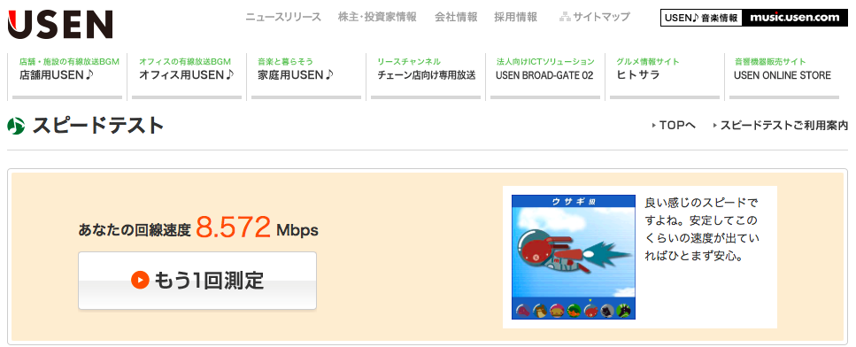 12Mタイプで契約していてこれくらいのスピードが出ています。